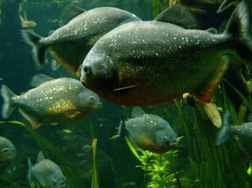 The piranha is known in Western culture as one of the most feared creatures of the water. Nonetheless, natives of the Amazon forest regularly swim in piranha-infested waters. Piranhas are very small fish with large teeth that are usually a grey or blue color. Although they are omnivores, they hunt in groups called shoals. One characteristic unique to the piranha is that when a tooth is lost or broken, a new one will grow in its place.