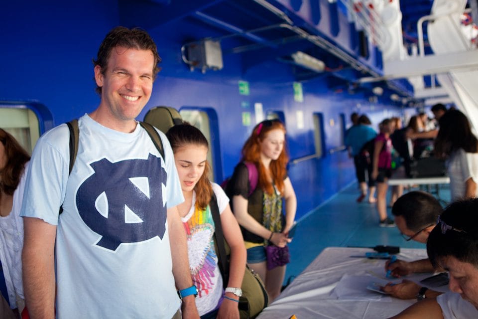 Living on a ship is a foreign experience to most of us. Each Semester at Sea voyage, a new group of students experience the (sometimes literal) ups and downs and new found challenges of studying, attending class, eating, exercising, walking down a hallway and everything else inherently different aboard a ship. It's a lifestyle that feels simultaneously familiar and incredibly different and unexpected. Rather than trying to explain this duality, we want to show you. Below, staff photographer Rafael Aguilera takes us through several hours in the life of a Short Term 2012 Semester at Sea student embarking for their first day aboard the MV Explorer. If you can recall your first day of college, this will be as surprising as it is familiar. -John Vieira