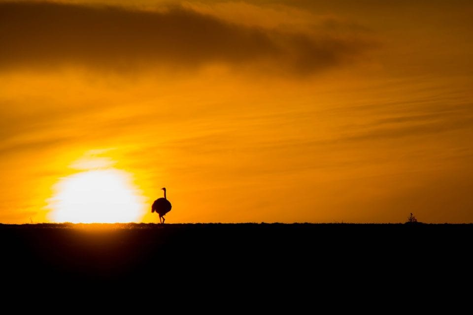 What a picturesque sunset with an ostrich on the horizon. Photo by Trevor Fairbank from San Diego State Univ.