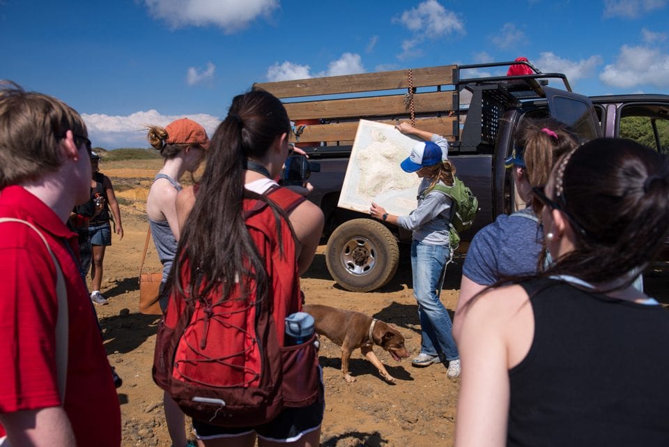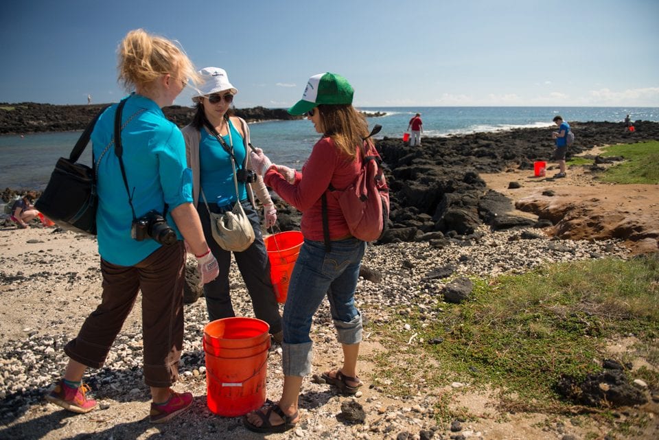 In Hilo the students disembarked from the MV Explorer to follow in the footsteps of Hohn and to put their observation and research skills into real-life situations. The group met with Bill Gilmartin, founder of the Hawaii Wildlife Fund, and one of the characters in Hohn’s book. Gilmartin and his colleagues traveled with the students from Hilo towards the southeastern beaches of the Big Island and explained their efforts to remove and prevent marine debris.