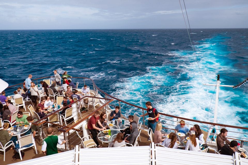 “It’s really cool that we’re secluded in the middle of the ocean while we’re traveling from place to place. We have limited access to technology, so when you’re meeting people you’re actually meeting them. You aren’t just like, ‘Let’s be Facebook friends, I’ll never talk to you again.’ It’s so much easier to make real, meaningful connections.” ‚Äì Allie Mendola, Quinnipac University