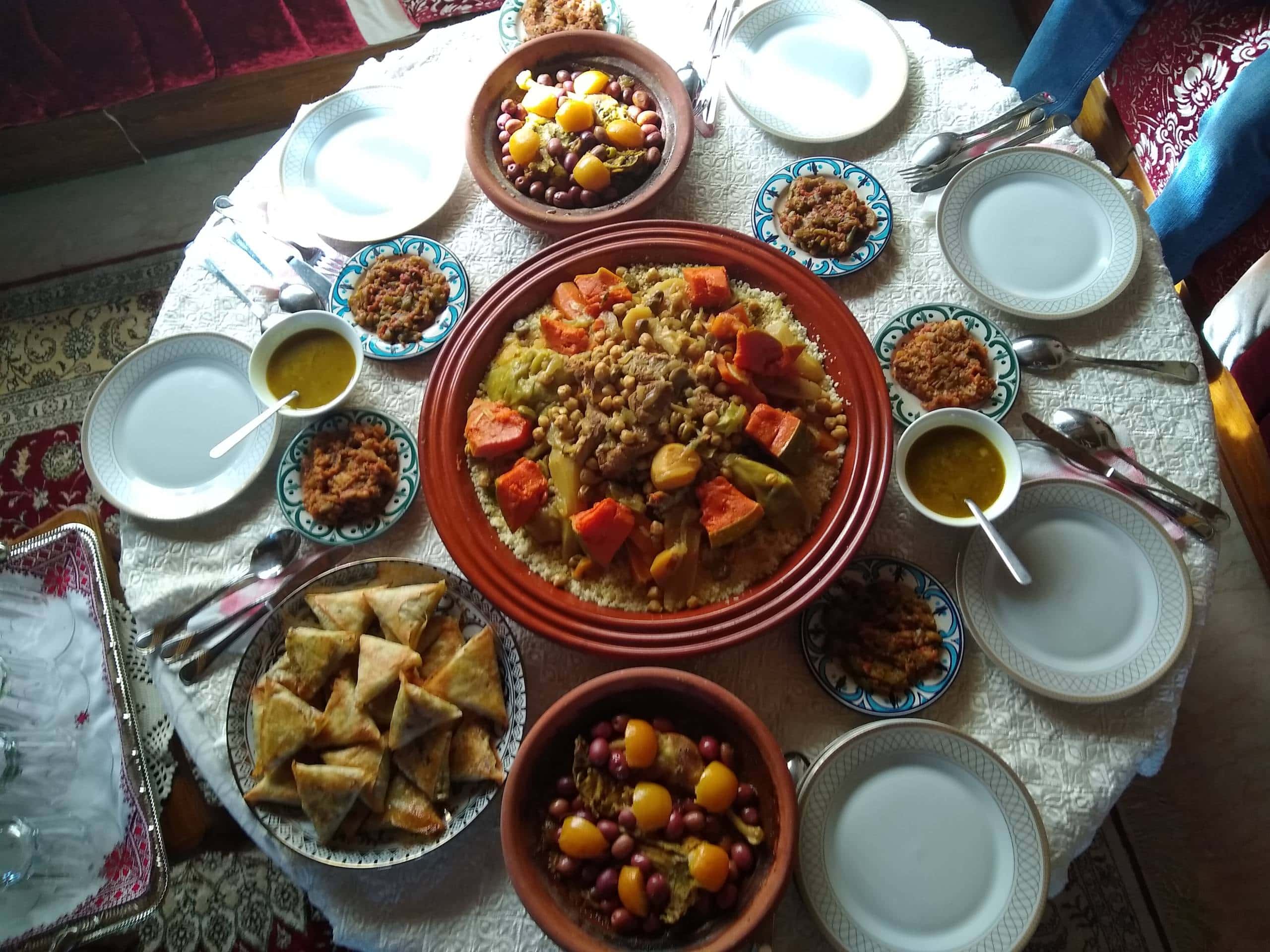 After a few hours of hard work under the hot African sun, students and volunteers shared a traditional Moroccan meal of salads and chicken tagine with bread.