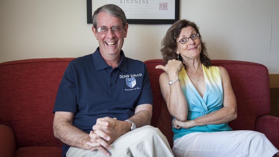 From the playful way that Academic Dean David Gies and Executive Dean Marti Fessenden interact with each other, you’d think they’d been working together — or sailing together — for years. But, the pair that is ultimately overseeing the academic and co-curricular programming on board the MV Explorer this summer just met in person last year.