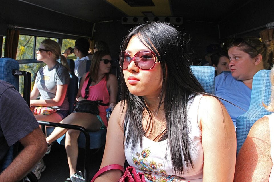 Students experience four wheel driving Italian style. The journey to the top of Mount Vesuvius is filled with long switch backs and takes about 30 minutes. After reaching the parking lot students must hike another 20 minutes to the top. Yingjia “Lemon” Guo from the University of Virginia looks at the rolling terrain as she is taken up the volcano and prepares for her exploration.