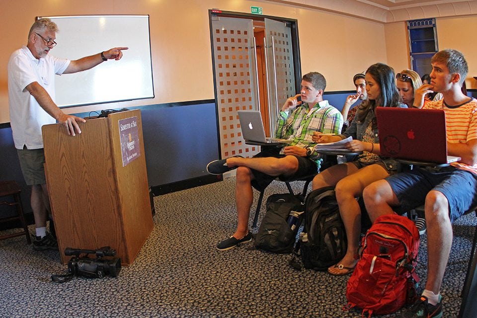 The summer 2012 voyage provides a remarkable context for a course in documentary film. We have class daily and informal teacher/student interactions throughout the day. Documentary filmmaking is more than an academic subject; it is a way of looking at the world. Our floating “academical village” provides the perfect setting.
