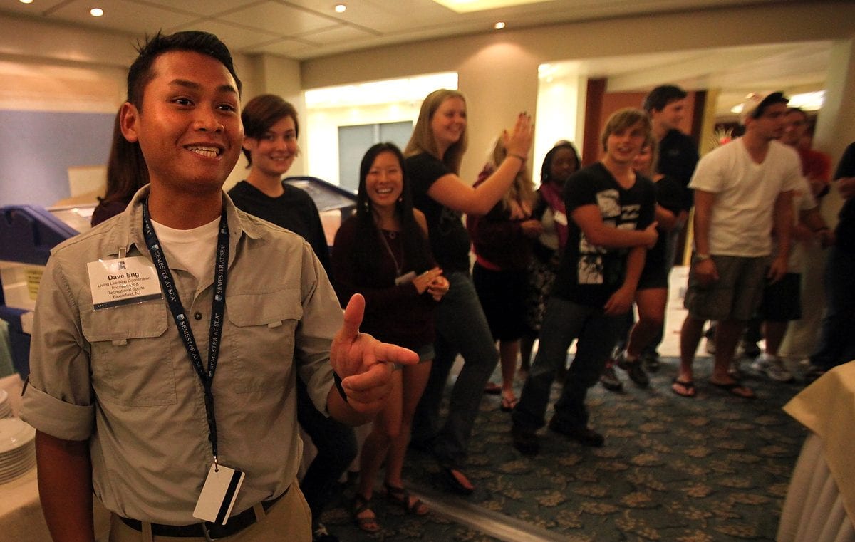 In order to provide the most complete global education possible, Semester at Sea is a living-learning environment. Faculty, staff, Lifelong Learners and students live and work in a shared environment on this study abroad voyage. Co-curricular activities provide a wonderful way for all participants to continue the learning outside the classroom. Orientation culminated in an involvement symposium during which all members of the shipboard community were able to sign up for, or create, groups. The incredible range of interests and talents aboard the ship was evident as students, Lifelong Learners, faculty and staff ventured around Deck 6 exploring their options.