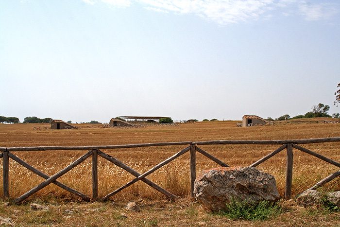 As we drive along one-lane dirt roads we can see the coast in the distance. The golden fields are spotted with small doorways. These are the tombs of Tarquinia; it’s clear why this is a UNESCO World Heritage site, as tomb entrances seem to be everywhere we look.