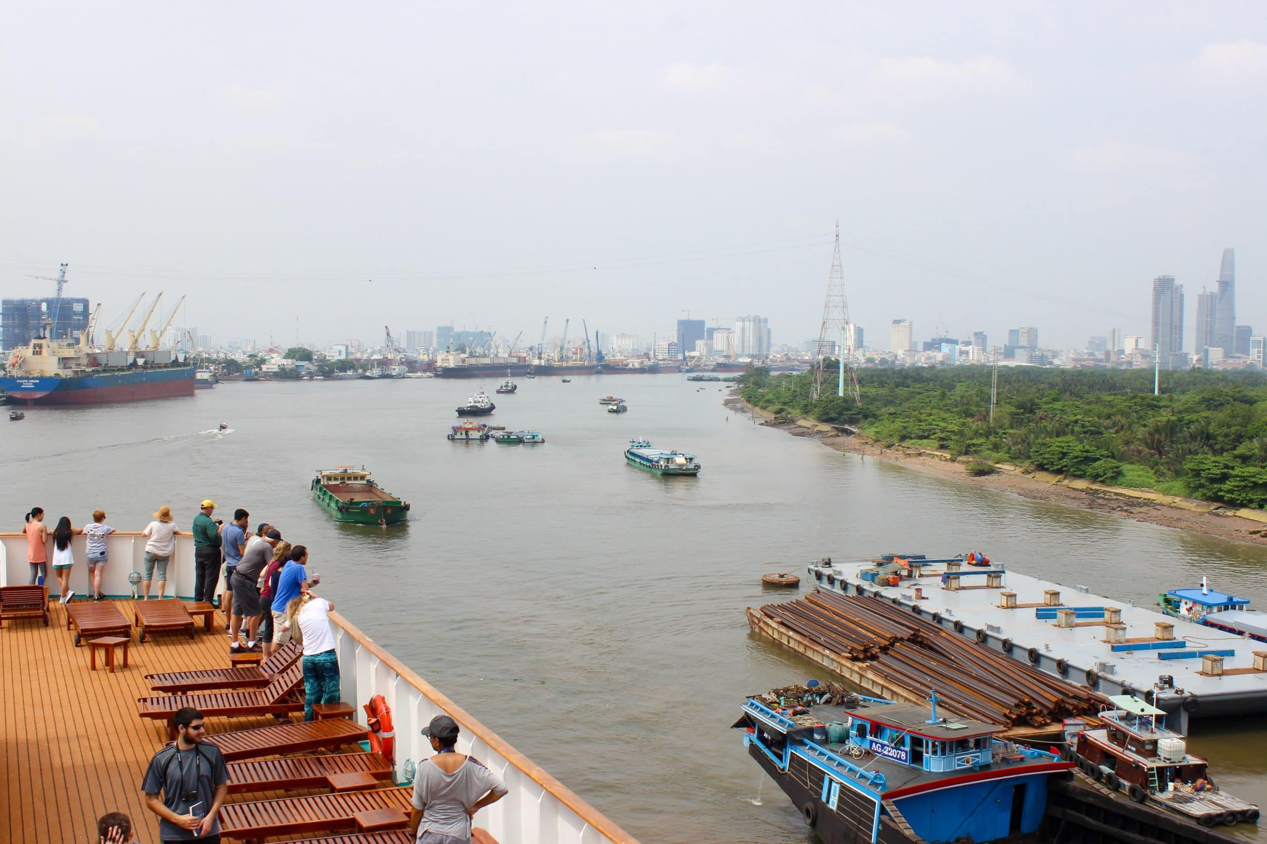 Xin ch√†o from Vietnam! The MV World Odyssey docked in Ho Chi Minh City, also known as Saigon, at 1200 on Friday, Feb. 10. Ho Chi Minh is located in Southern Vietnam along the Saigon river, north of the Mekong River delta, and is the country’s most populous city. Voyagers will have the chance to visit the famous temples of Angkor, shop at the beautiful floating markets of the Mekong Delta, and much more over their three-day stay.
