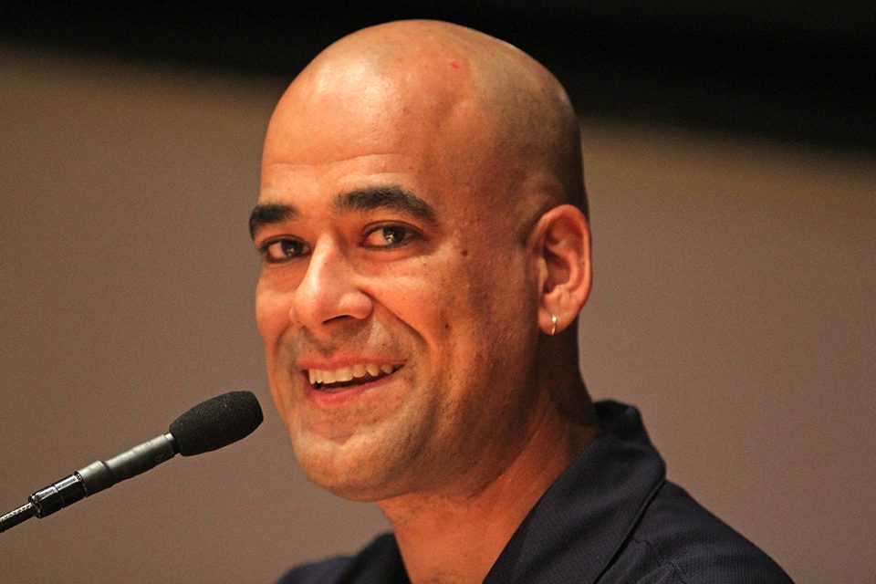 Executive Dean Kenn Gaither addresses the students and welcomes them aboard. He believes this 110th voyage will be the best one yet and offers some wisdom, from his experience as a student, staff and faculty member, to ensure it will be. ( photo by Russ Bryant)