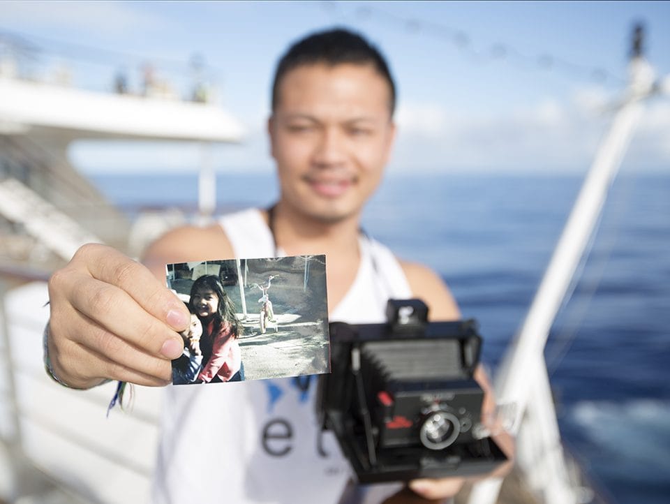 Hoang Nguyen from Bentley College brought a Polaroid Camera from the late 70’s on the ship with him. ‘The Reporter’ camera was a gift from his girlfriend, and although he has to be much more selective with his photos as he has a limited supply of film on board, he prefers the Polaroid to digital. Hoang says that being more selective gives him a better appreciation of the moment and the resulting photograph. He looks forward to capturing all he will experience over the next four months.